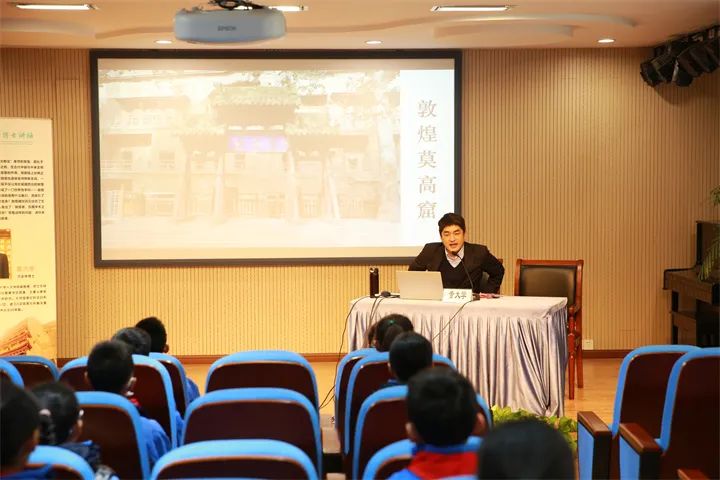董大学博士引用大量史实资料,告诉学生们敦煌是古代多元文化的交汇中心,并且真实再现了一百多年前莫高窟藏经洞文物从发现到被国外学者掠夺洗劫的历史,针对“敦煌莫高窟的历史”“藏经洞是为何被封存的?”“王道士是在什么情况下发现神秘洞窟的?”“藏经洞文物又是如何流失的?”等问题一一做了精彩讲解。