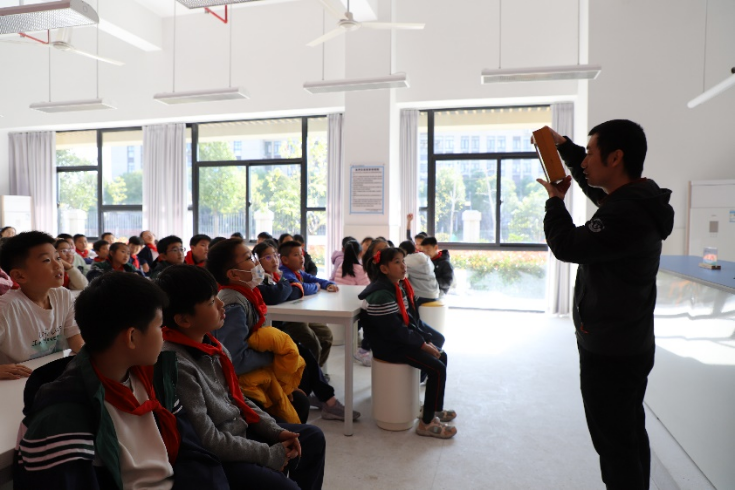 胡佳耀以《多彩的昆虫世界》为钥匙,开启奇妙自然之门。他用生动图文与鲜活实例,引领孩子们探秘昆虫百态,从蝴蝶之舞到蜜蜂之勤,从螳螂之威到蜻蜓之灵,细节尽展生命与自然智慧。更邀昆虫“嘉宾”光临,甲虫硬壳、幼虫软蛹、竹节虫伪装、蝗虫“跳远赛”,互动体验令孩子们深刻领悟昆虫世界复杂多元,点燃自然科学热爱之火
