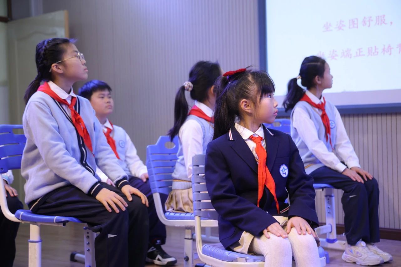 “脊”先锋团队携手海星少年们共同呈现情景剧《“脊”心协力 “柱”力健康》。通过栩栩如生的表演和对话,生动展示了孩子们在日常生活中如何正确坐立行走,以及如何挑选合适的书包和桌椅以保护脊柱。情景剧以师生们认真进行脊柱保健操的场景作为结尾,传递出积极向上的健康生活理念。