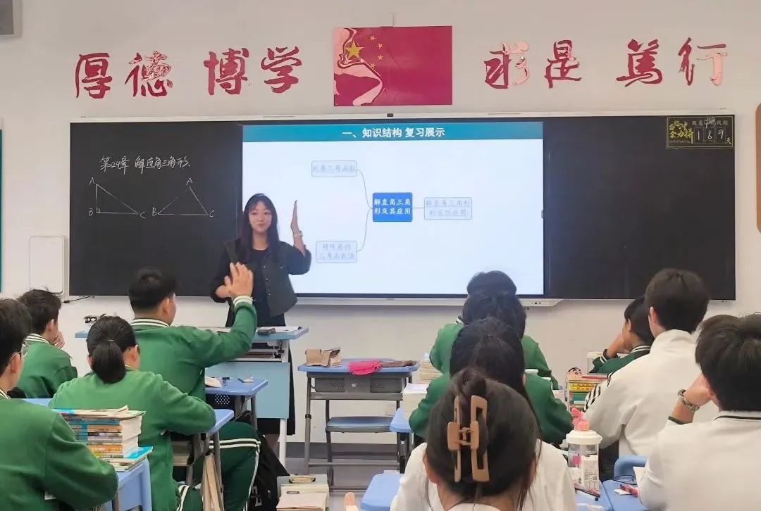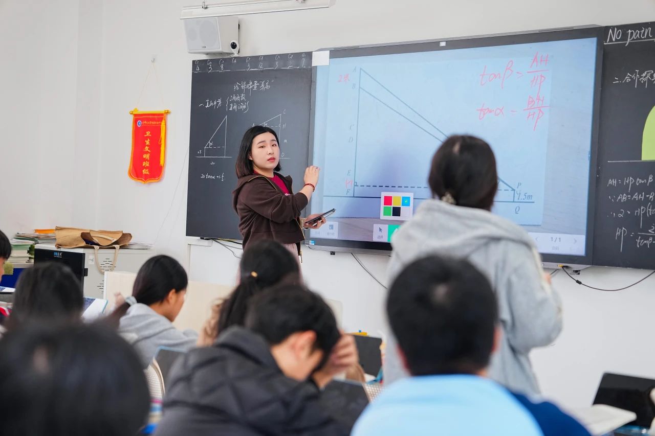 上海市宜川中学附属学校游晓洁老师和附属儋州实验学校曹静依老师共同执教数学“解直角三角形”专题复习课,游老师从实例出发构建直角三角形几何模型,设计有梯度的问题链,归纳解题技巧,感悟数学模型与实际应用转化的思想。曹老师从引导学生构建知识结构切入,渗透数学几何模型思想并以例题演练的形式对本章节知识进行巩固提升。