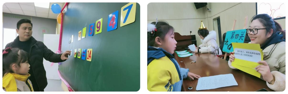 附属合肥实验学校1月11日上午,一、二年级开展了趣味盎然的闯关活动。本次闯关两个年级部内容涉及语文、数学、综合学科,内容包括朗读、背诵、交际、书写、计算、动手操作、解决问题、劳动教育等内容。一年级综合创新运用信息二维码随机抽选游戏内容,一年级老师们为孩子们精心设置了“综艺展示”“背诵乐园”“画中有话”“口算”“生活中的图形” 等七个个“游园关卡”。 二年级则运用了童话剧模式,全体教师依照学生的年龄特点、成长需求、知识水平,快乐语数以及校本研修特色,设计了“字词大闯关”、“背诵乐园”、“交际展示台”、“出口成章”、“师生对口诀”、“时间小主人”等环节让孩子们迅速进入角色,开心地融入学习。
