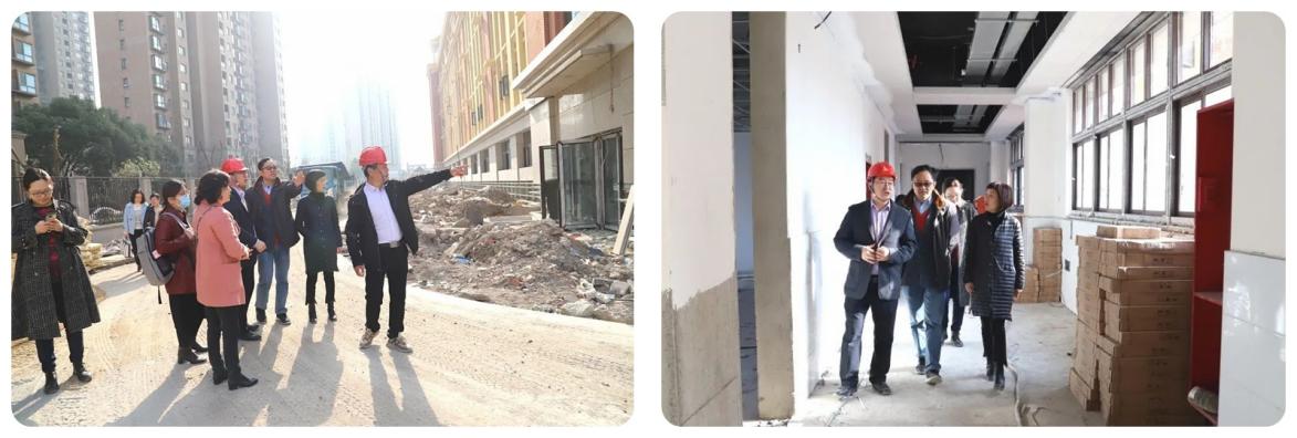 最后,专家团队前往两校新校址参观,对教学楼、学校设施、建筑规模、布局安排、教室设置等有了更详尽的了解。
