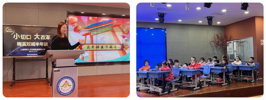 附属黄浦梅溪小学英语教研组的老师们,借助梅溪论坛这个平台,踊跃地讨论着:“双减”背景下,小学英语课堂该如何转型?如何切实减轻孩子的学业负担?大数据背景下,信息赋能如何展现其功效?在研讨活动中,上海师大附属黄浦梅溪小学的教师们经历了迷茫—学习—领悟—研讨—反思和实践的蜕变……