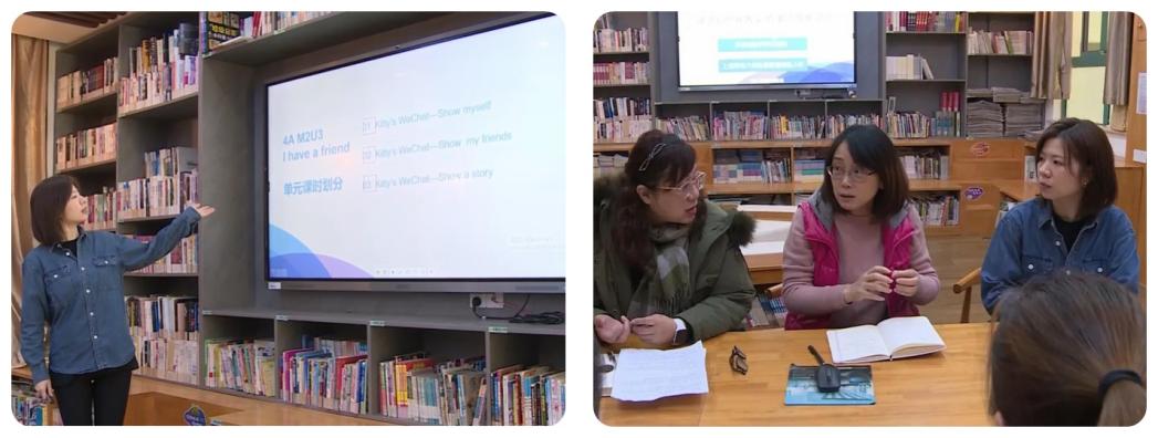 科大讯飞的“AI+学习”在人工智能领域非常出色,前期周老师根据软件的特点,以四年级My friend为教学主题进行了精心的准备。傅璟老师的莅临指导后,老师们更是领会了精神,说出了想法,决定将本次教学实践活动由四年级转变为一年级进行尝试,组内的马一鸣老师接受了授课任务。
