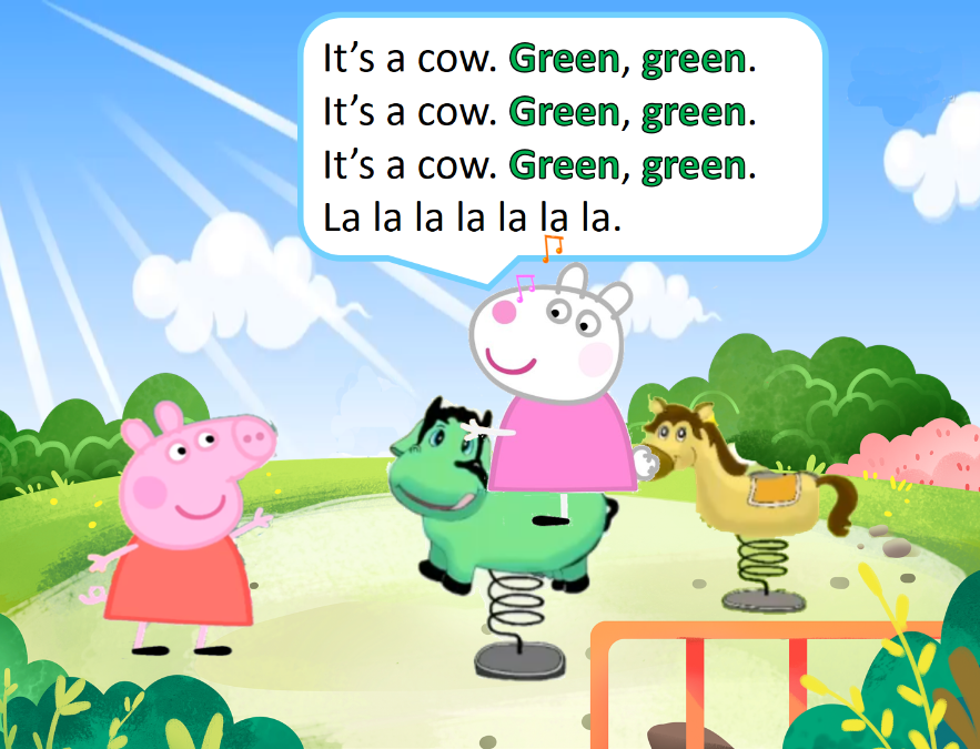 黄浦梅溪小学教研组内所有成员群策群力,通过多次研讨,结合一年级小朋友的身心特点,深入思考了课件的设计与制作。由于时间比较紧,教研组经过头脑风暴,将PARK这一主题改为小朋友熟知的小猪佩奇。