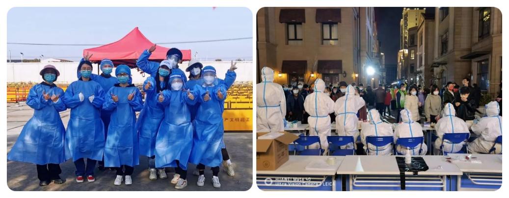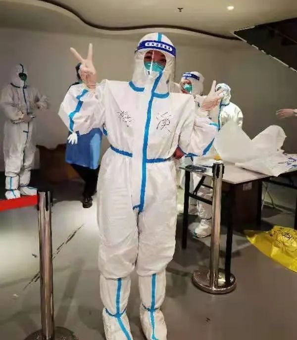 就这样,在核酸采样点站了五个多小时,直到晚上十点十五分,核酸采样终于结束,一共协助了约2100多人完成检测。在脱下防护服的一瞬间,吴佳老师感慨万分,她说:“我觉得现在的空气是如此清新,长时间闷在厚重的防护服中,感觉整个人被套在一个不透气的塑料袋中,汗流浃背。亲身体验,才感受到医务工作者人员的艰辛,深刻体会到哪有什么岁月静好,不过是有人替你负重前行。虽然,身体会感觉略微不适,但任何时候只要有需要,依然会第一时间赶到。”
