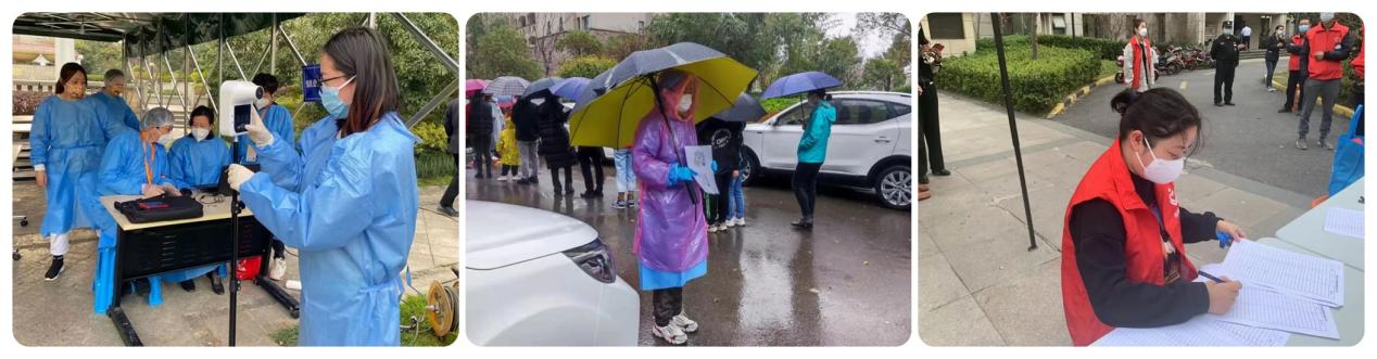 附属奉贤实验小学的老师们化身大白和志愿者奋战在各自的防疫岗位上,奔赴各自所在社区的防疫第一线。有的志愿者上门登记信息;有的志愿者帮助居民登记二维码信息,现场测温;“请大家打开今天的检测码,截屏打开,把手机亮度调高,保持安全距离”“口罩规范戴,鼻子要遮好。”“请大家排好队,保持一米线距离。”志愿者们一遍又一遍向排队等待核酸检测的居民发出提醒...