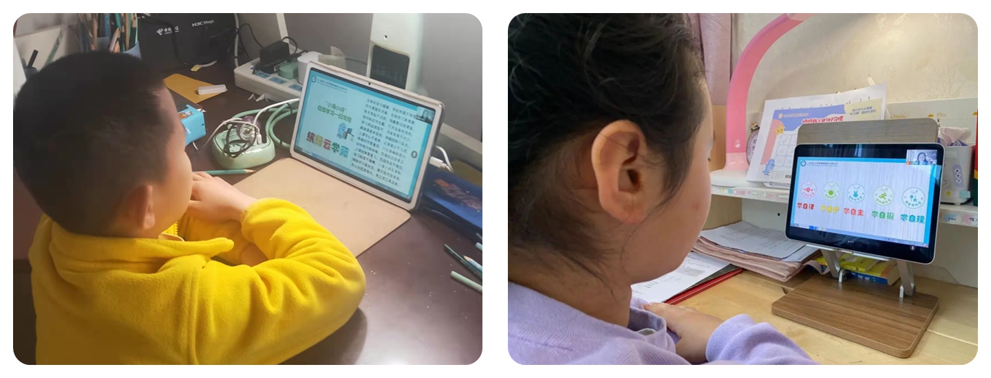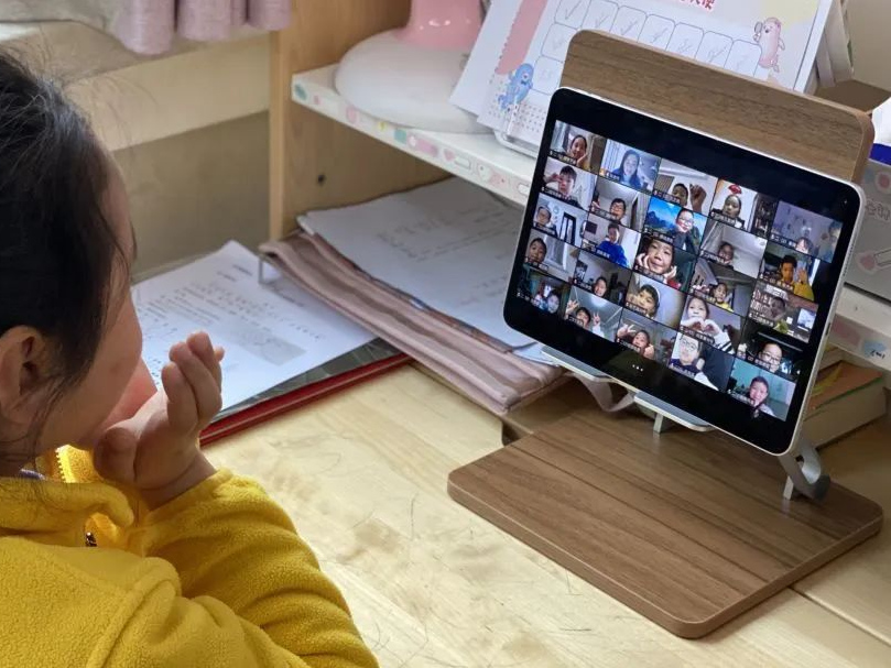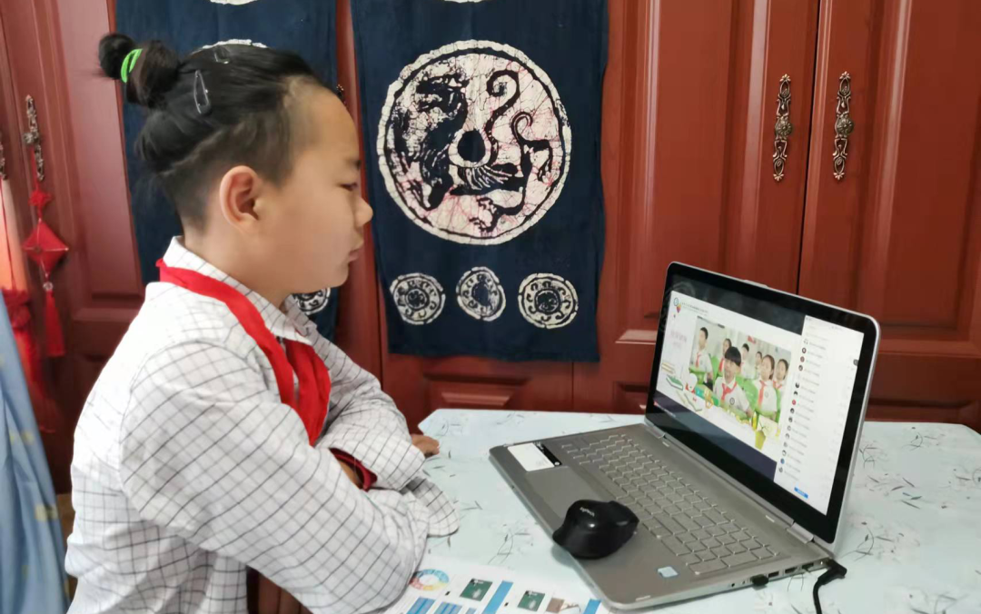 此外,在平常的线上教学中,学校也是将“全员导师制”贯彻得十分彻底。例如有老师的表情包成了学生线上的“上课铃”,“线上教学不仅考验学习能力,更是对孩子自控力和自主性的检验。听不到上课铃声了,是不是心里的上课铃也消失不见了?”导师高寒菁说,有一位小朋友活泼“爱自由”。为此,线上教学的每一天,自己都会成为孩子的专属“上课铃”,有时是电话连线,有时是一个敲门的表情包……就这样虽然上课铃声没有响彻校园,导师们却让它敲响在了孩子的心上。