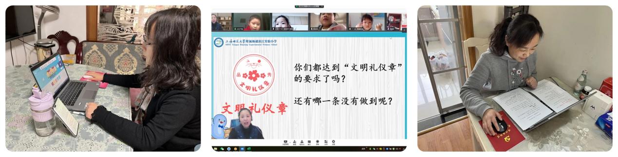 下午13点,活动正式拉开帷幕。导师带着同学们回顾一周来在线学习的表现,开启了校本特色“文明礼仪章”的考章。