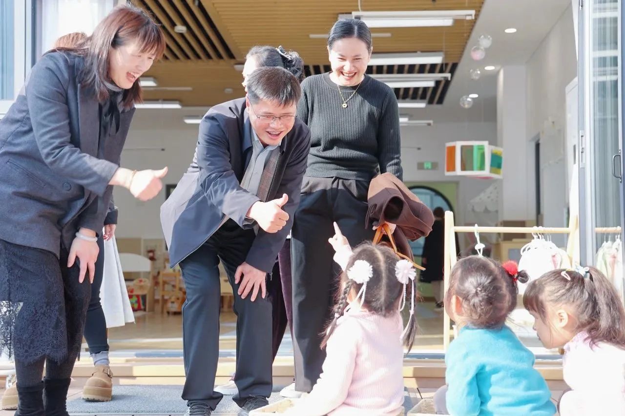 在附属嘉定幼儿园,广西师大考察团参观了各年龄段幼儿的室内外活动,室内孩子们专注探索体验与创意游戏,室外活力满满的玩美活动展现出蓬勃朝气,丰富多元的活动与孩子们的灵动表现赢得考察团连连称赞。随后,双方在会议室展开座谈。 附属嘉定幼儿园党支部书记、园长金春亚围绕上海师大合作办学经验与成效、党建工作、队伍建设、课程特色等方面进行全方位介绍。座谈中,双方就幼儿教育前沿理念、教学方法创新以及师资队伍建设等话题进行深入探讨交流。广西师范大学考察团代表表示,此次交流拓宽了视野,收获诸多宝贵经验。双方均期望以此次交流为契机,携手探索幼儿教育新路径,为孩子们打造更优质的教育环境。