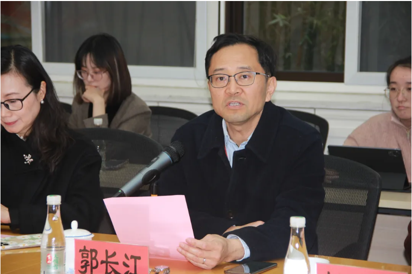 副处长郭长江主持会议, 附属中学闵行分校校长赵婷、上海市实验学校东滩高级中学校长袁万萍、 附属闵行第三中学校长闵辉、 附属闵行日新实验学校校长沈敏,以及来自附属学校的骨干教师、本校研究生、基础教育发展研究院相关同志等30余人现场参会。