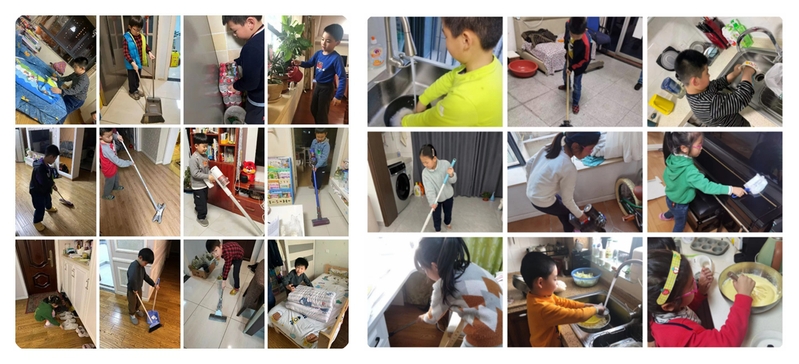 “爱劳动”是中华民族的传统美德。爱劳动的孩子更独立、更坚强、更孝顺、更有责任感。根据小朋友的能力水平,吴凯雯老师在班级内组织开展了“家务小达人”的活动。鼓励每一位学生在居家期间,通过自我服务性劳动和力所能及的家务劳动,如洗衣、扫地、整理床铺、做饭、洗碗筷等,成为爸爸妈妈的小帮手,掌握各种劳动技能,在经历中帮助他们养成吃苦耐劳、乐为他人服务等美德。在活动进行的过程中,班内的家长积极配合,孩子们也都跃跃欲试。孩子们有的跟着大人一起做糖饼、馒头、包馄饨,体验做大厨;有的帮大人晾衣服、叠衣服,学习收纳整理;还有的承包了洗碗、拖地、整理厨柜、书桌等家务活……孩子们热情满满,而吴老师也由衷地为他们感到骄傲。