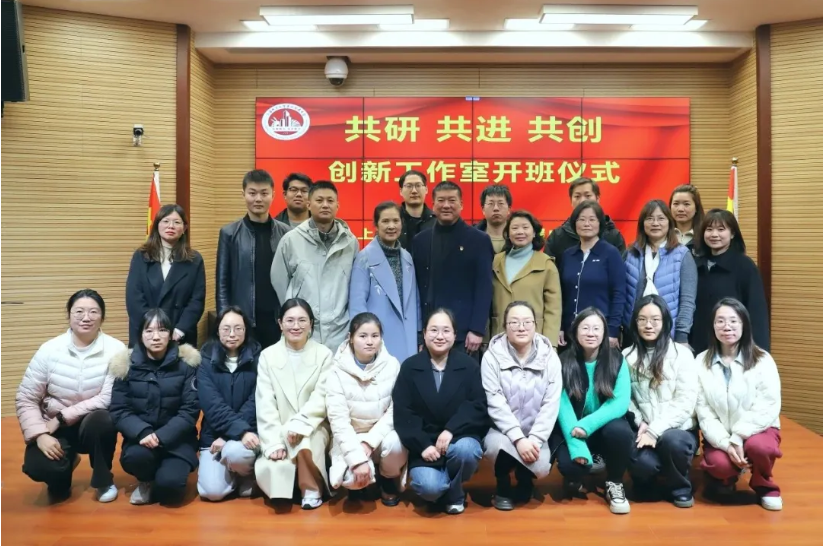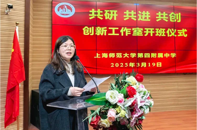 3月19日下午, 第四附属中学以“共研 共进 共创”为主题的创新工作室开班仪式隆重举行,创新工作室的启动标志着学校新优质高中成长校创建工作战略迈入实践深耕阶段。 基础教育集团教学指导委员会副主任周秀丽、第四附属中学党总支书记李宇靖、党总支副书记、校长朱银辉及全体教职工出席仪式。第四附属中学教师发展中心副主任葛明萌主持活动。
