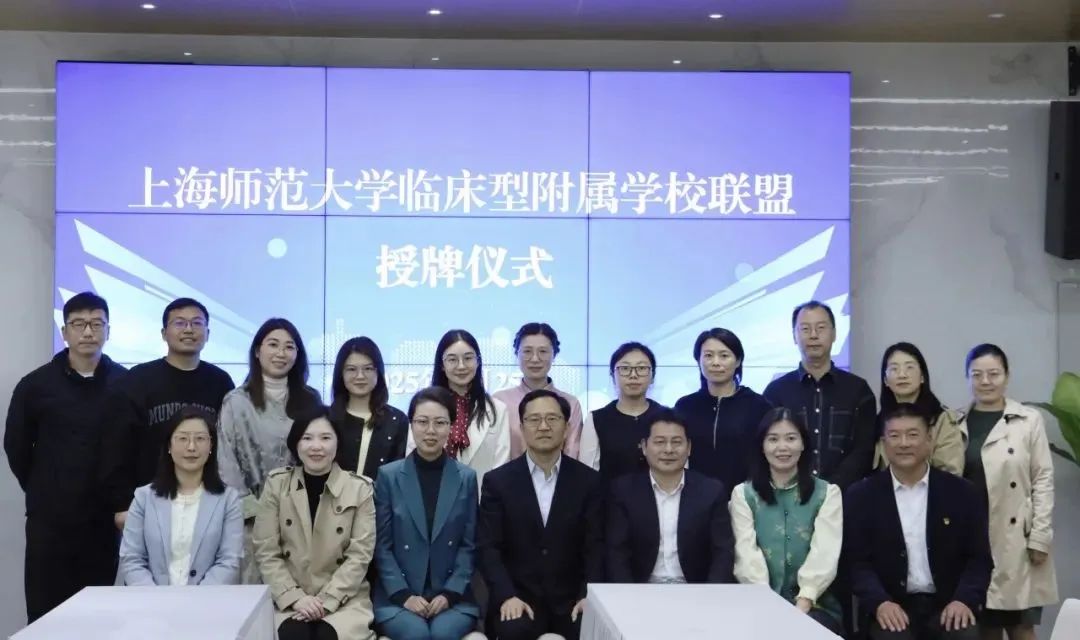 深化教育改革,创新育人模式, 临床型附属学校联盟正式启航。3月25日下午, 临床型附属学校联盟授牌仪式在 附属奉贤实验中学一楼会议室举行。奉贤区教育局副局长万国良, 处长郭长江、挂职副处长姜杉, 基础教育发展研究院科研员陆超, 附属奉贤实验中学书记、校长包蓓姹, 第四附属中学副书记、校长朱银辉, 附属奉贤实验小学书记、校长何超英, 附属奉贤实验学校(筹)书记、校长侯素英等四所联盟校的学校领导、嘉宾共同出席仪式。