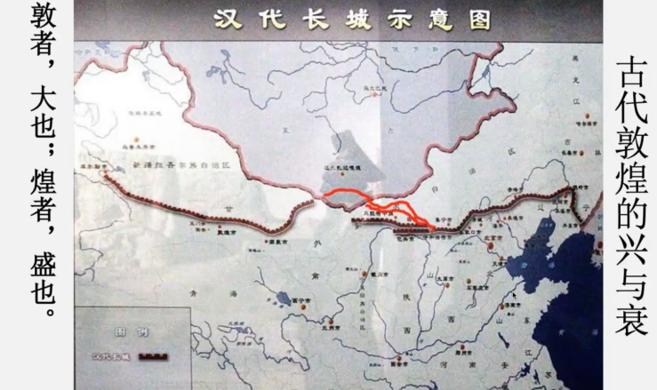 董博士从敦煌的历史与文化说起。告诉学生敦煌在地理位置上的重要性。在古代,敦煌是丝绸之路上的孔道与重镇,是对外交往的窗口,是古代中原进入西域的门户。“春风不度玉门关”、“西出阳关无故人”,董博士引用诗句介绍敦煌在历史上、军事上与文化中的重要意义。而后随着海上丝绸之路的崛起,敦煌随之没落,至明长城建立后,敦煌被弃置关外,地位急剧下降。