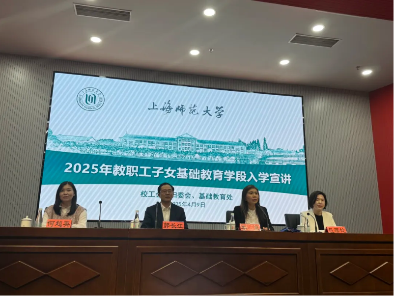 4月9日下午,2025年度教工子女基础教育学段入学宣讲咨询会在会议中心一号报告厅顺利举行。校工会常务副主席李凤,校 处长郭长江、挂职副处长姜杉,妇委会主任张红英, 附属奉贤实验中学党支部书记、校长包蓓姹, 附属奉贤实验小学党支部书记、校长何超英以及来自我校各学院、各部门有子女入学需求的教职员工参加会议。会议由校工会常务副主席李凤主持。