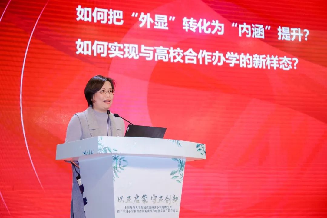 论坛上黄浦区教育局局长姚晓红、 附属卢湾小学校长虞怡玲、华东师范大学博士生导师杜成宪教授、 教育学院院长博士生导师夏惠贤教授等分别围绕“血脉”“赓续”“探索”“启航”等主题探讨了中国小学教育的传统赓续与创新发展问题。