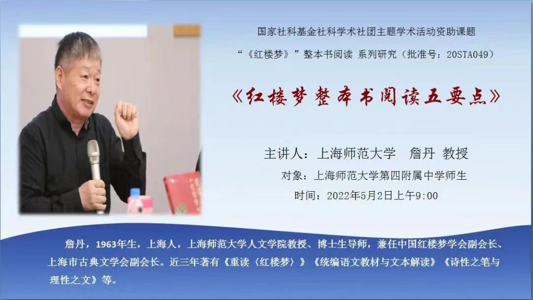 讲座指出阅读《红楼梦》要关注一组概念、二条线索、三个空间、四季叙事以及五层任务。并以《红楼梦》整本书阅读要立足三体即具体、整体、主体,作为讲座的总结,为师生记忆长篇小说提供一个有效的途径。