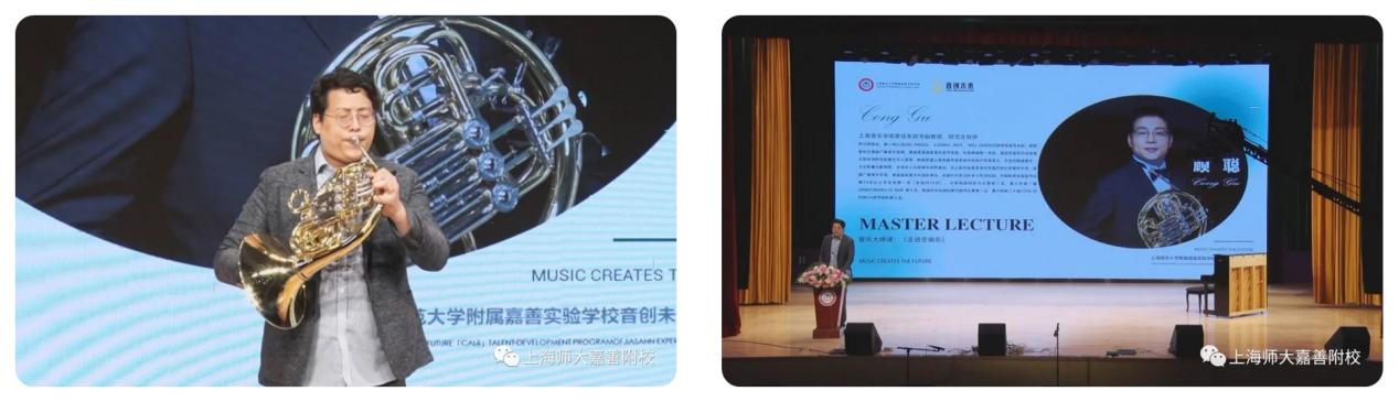 本次夏令营的开营仪式也是大师云集、干货满满,开场就是上海音乐学院管弦系圆号副教授、研究生导师、上海青年拔尖人才、青年学者顾聪带来的“大师课”——《走进交响乐》。顾副教授为学子们由浅入深的分享了交响乐的发展历程与基础知识,并现场带来了一小段即兴演奏,赢得了满场掌声。