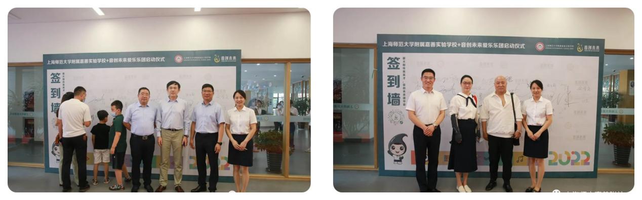 8月18日, 附属嘉善实验学校大师云集、星光璀璨。中国爱乐乐团管弦乐首席演奏家,中国传媒大学、清华大学、上海音乐学院等院校的音乐教育专家, 领导,嘉善县教育局领导,华夏集团教育部领导,各友好单位领导,各媒体代表等重量级嘉宾莅临学校,与上海师大嘉善附校领导、师生们共聚一堂,共同见证“音创未来”人才培养项目——嘉善首个管弦乐主题夏令营在上海师大嘉善附校正式开营,共同见证首个高标准学生管弦乐团——上师“爱乐乐团”正式成立!