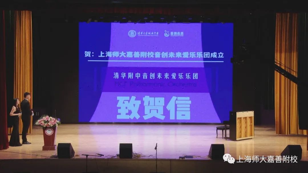 嘉善附校的友好兄弟学校清华附中嘉兴学校爱乐乐团为上师爱乐乐团发来贺信,并通过线上连线为乐团送上乐团合奏曲目《卡门序曲》,以表对上师爱乐乐团正式成立的祝贺。