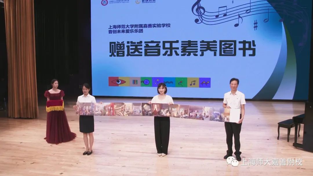 人民邮电出版社综合出版中心音乐板块负责人杜梦萦女士赠送音乐素养类图书,鲍志慧总校长、丁土根书记接收了这份珍贵的礼物。