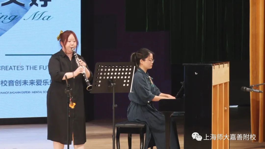 音创未来音基/钢琴老师(乌克兰利沃夫国立音乐学院钢琴演奏博士、乌克兰利沃夫爱乐乐团艺术家经济、乌克兰青年室内乐团艺术指导)马文婷,音创未来单簧管教师(正声爱乐乐团单簧管首席、中国传媒大学优秀毕业生艺术团团长、曼哈顿音乐学院音乐表演硕士在读)孙奕晴联袂登场,为到场嘉宾、师生们带来单簧管与钢琴合奏曲目:《青花瓷》、《天鹅》,悠扬动听的旋律感染了现场每一个人。