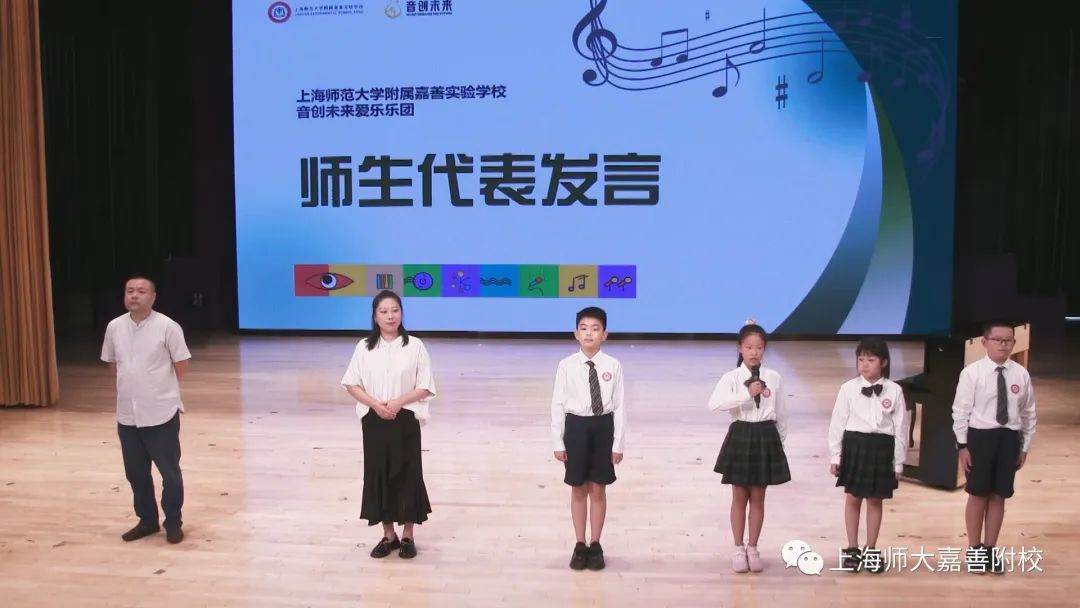 乐团首批成员张留旭、苏子棋、徐文治、陆雨馨同学四位同学作为代表发言,他们稚嫩却有力量的声音表达了对音乐的热爱与向往。