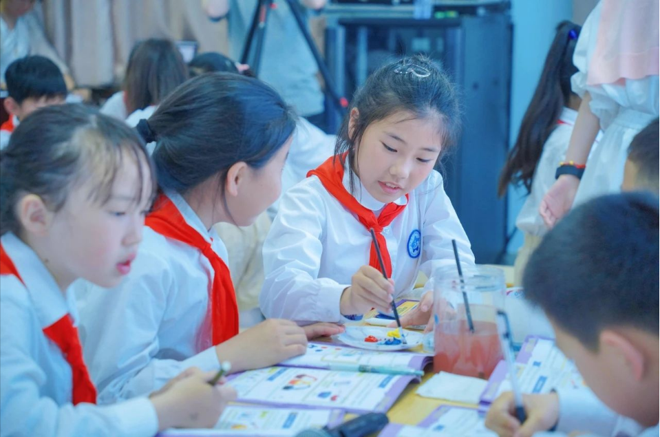 附属奉贤实验小学许静老师与 建筑工程学院姚传芹老师联手执教三年级《色彩实验室》项目化学习课例。课堂上,两位教师打破传统教学边界,引导学生通过色彩混合和色光混合实验等实践环节,将艺术审美与科学思维有效融合。学生们分组协作、动手操作,在跨学科情境中迸发创新火花。