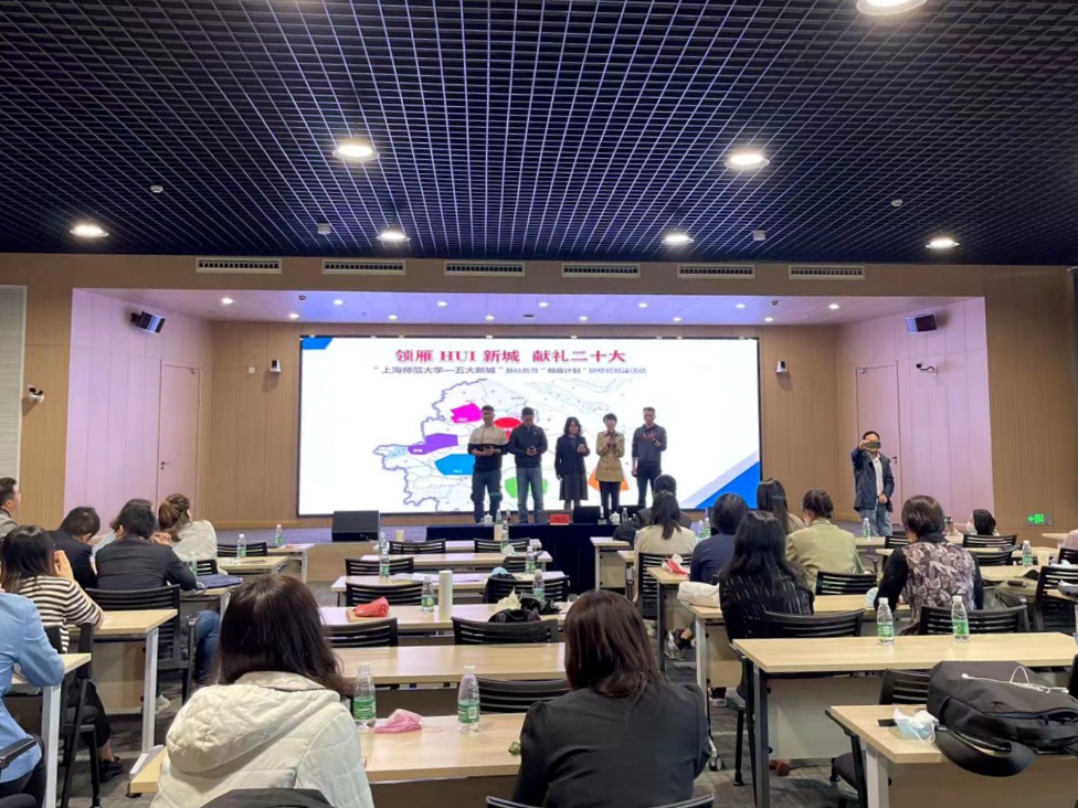 上午讲座结束之后,领雁1班班长季隽、领雁2班班长徐永光,分别设计了班级团建活动。领雁1班“最长的纸链”活动,每个小组成员只能单手操作,需要小组成员通力合作才能完成;领雁2班“五个新城拼图”活动,在游戏中,让五个新城的学员相互认识。活动最终评出了奖项,学员们还进行了才艺表演,因为培训活动正值国庆,互动在“歌唱祖国”的合唱中落下帷幕,学员们共祝中华人民共和国七十三年华诞,一并“献礼二十大”,教育工作者的爱国之情溢满整个会场。