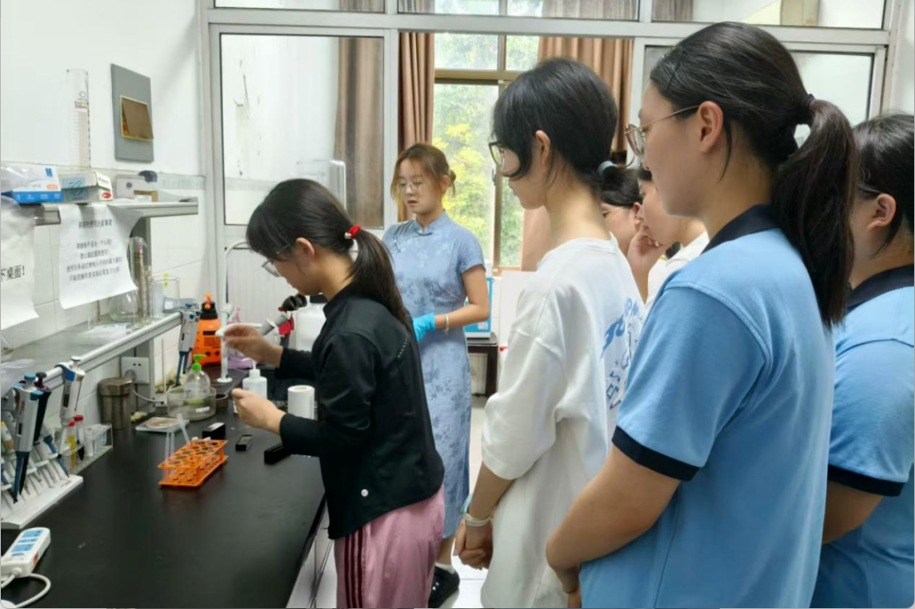 理论过后,就是实践。同学们在 助教老师的帮助下,完成了比色分析法测定D-丙氨酸含量的实验。了解了一些专业仪器的工作原理和操作方式。观察到了神奇的实验现象,体会到了化学学科的无穷魅力,充分激发了同学们的求知欲。