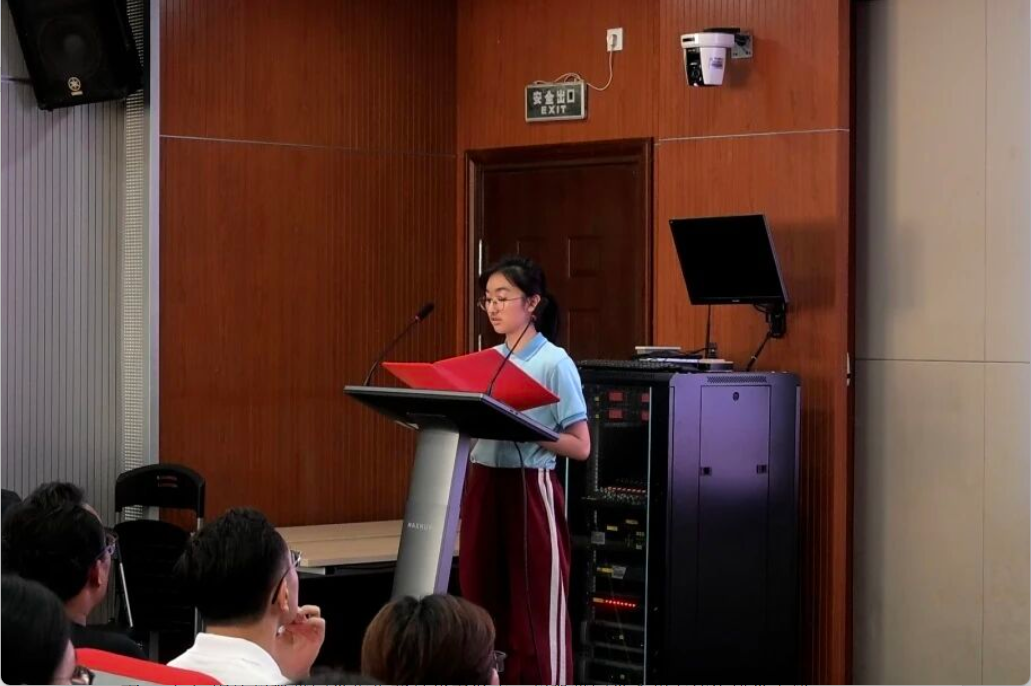 高一(9)班的赵静雅同学作为营员代表发言。赵静雅同学希望在这次研学中能够通过实地考察、专家讲座、动手实践等多种形式,深入了解“师道教育”,感悟科创魅力,提前体验大学生活,提升解决实际问题的能力。