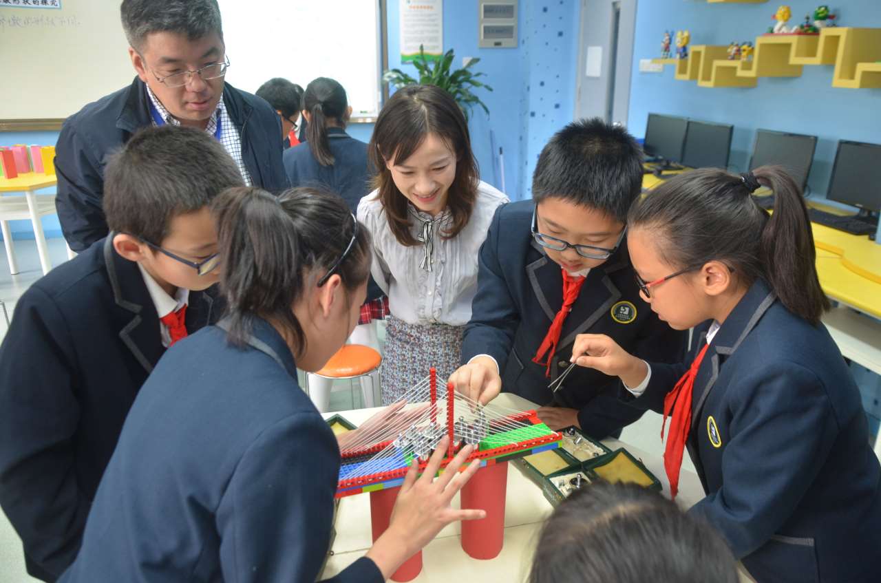 “乐高”、“STEM+桥梁”两门创智校本拓展课程进行了教学展示,刘雨辰老师的《乐高天平》一课,以任务驱动的形式,结合数学、自然、物理等学科,通过让学生动手搭建乐高天平,让学生初步认识等臂杠杆等模块知识。王雯青老师的《桥墩形状的探究》一课,通过五个环节,即分享调研、提出问题、实验操作、总结问题和设计报告让学生对影响桥墩形状的因素有了一个初步的认识,整节课气氛活跃,学生兴趣浓厚。