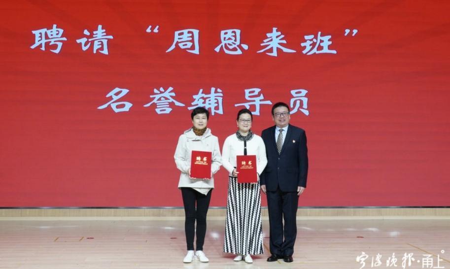 宁波市奉化区委常委、常务副区长李春泉,与周恩来侄孙女、上海翔宇公益基金会执行理事长周蓉一起为“周恩来班”揭牌。学校还聘请周蓉,以及上海翔宇公益基金会秘书长、原周公馆副主任季明为“周恩来班”名誉辅导员。
