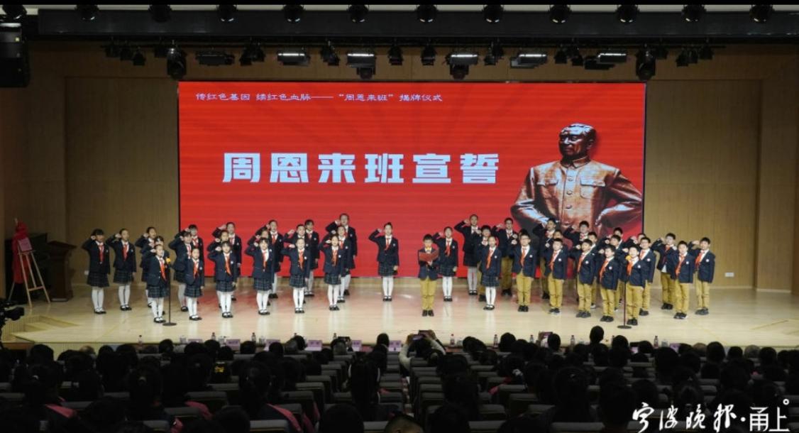 3月5日是周恩来总理诞辰纪念日。3月8日上午, 附属宁波实验学校“周恩来班”揭牌仪式举行,该校502班全体学生深情朗诵《周总理,你在哪里》。从今天起,这个班被授予“周恩来班”的殊荣,这也是宁波市首个“周恩来班”。