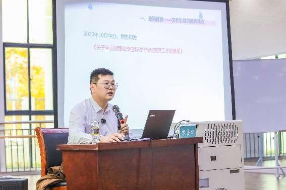李嘉栋老师做《艺术课程观与音乐教学设计》专题报告。李老师从政策背景——文件引领的美育课改、价值追求——以学定教的艺术课程、品质内涵——音乐教学的思维逻辑、理想成就——艺术教育的三重境界等四个方面进行系统介绍。两场报告内容丰富,老师们纷纷表示受益良多。