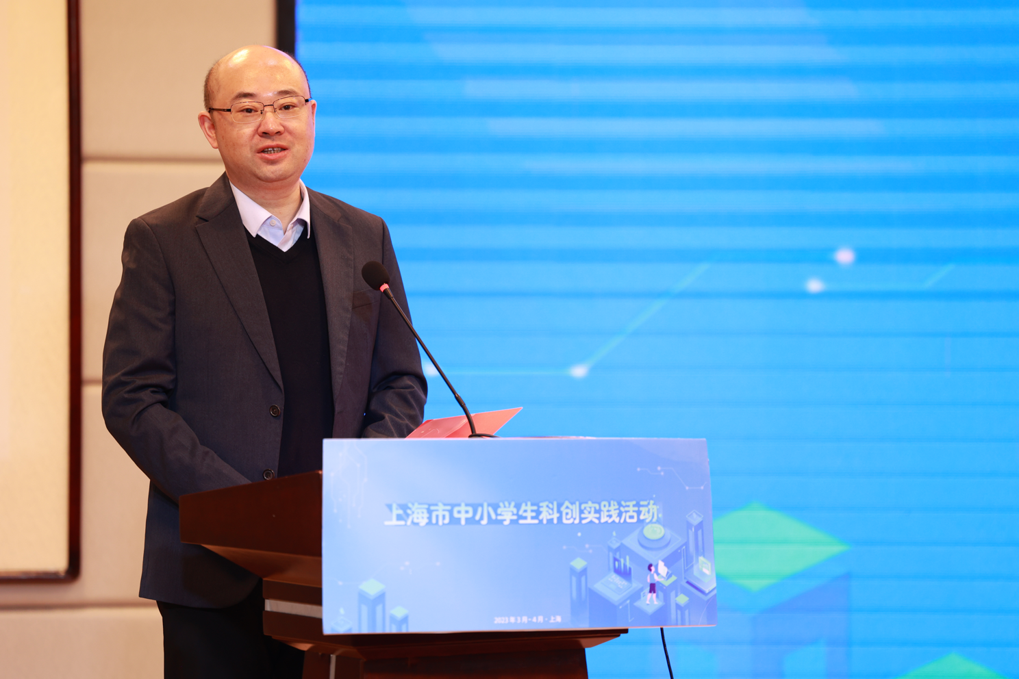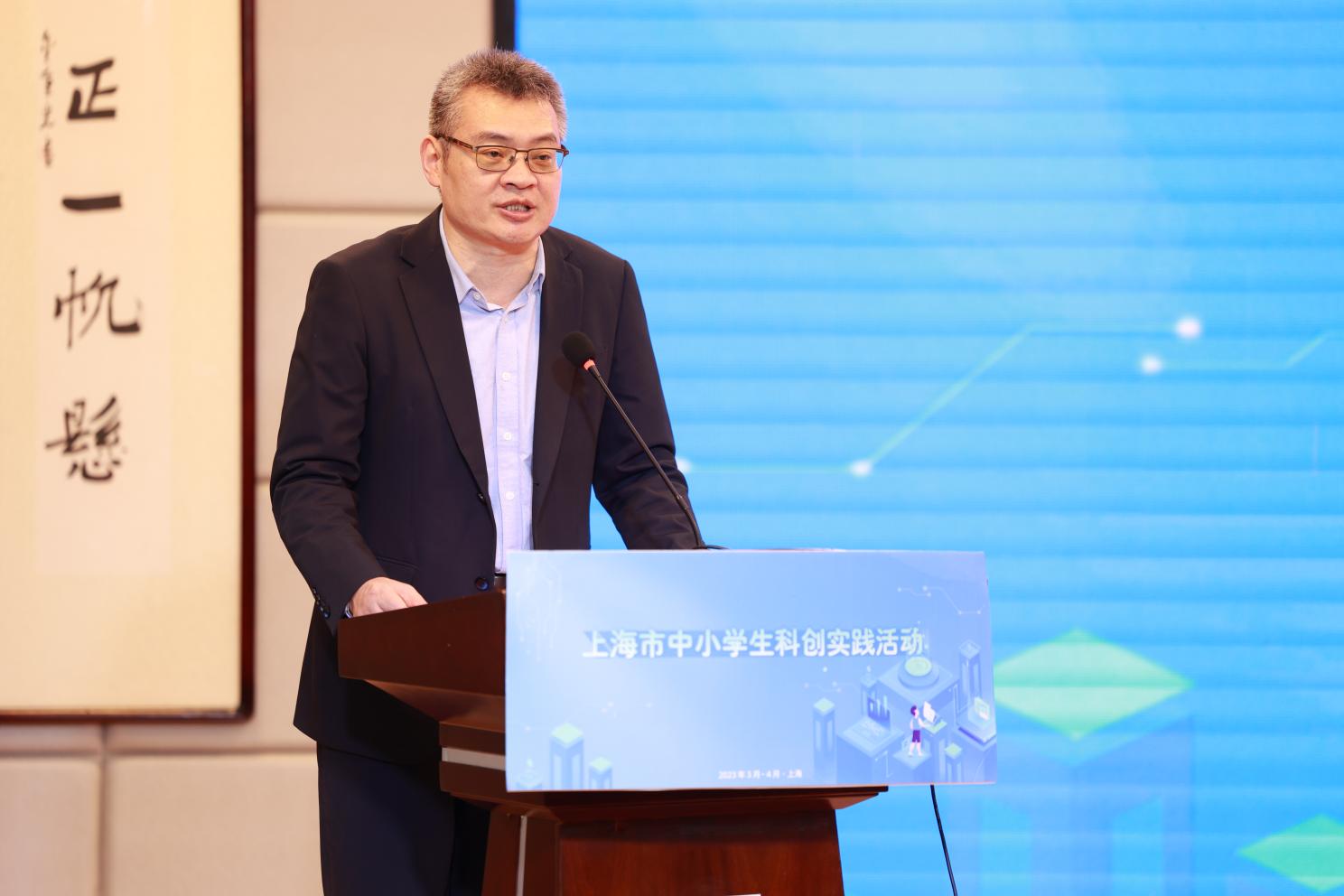 上海市教师教育学院王洋院长在致辞中表示,本次活动全市近300名师生齐聚浦师附小,是在为科创教育播撒希望的种子。2021年以来“双减”一直是最为热议的话题,也是教育督导的“一号工程”;教育的本质最后还是要回归到育人,我们作为教育从业者,应该为孩子们提供更多的机会,培养他们的逻辑思维、创新思维、批判性思维,促进学生的全面发展。教育强,则科技强。此次活动以师生为主体,以课程为支撑,以过程性评价贯穿始终。希望教师们在这次培训与实践中,成长为新一批科创种子教师,充分发挥教师的价值和优势,完成科创类校本课程的孵化;希望学生们可以在“好玩”中带着兴趣活动,在“原理”中带着思考动手,在“探索”中带着精神创新,最终实现师生数字素养的全面提升。