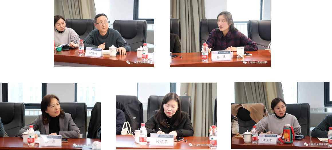 附属青浦实验中学校长胡俊杰、附属青浦实验学校校长张葳、附属宝山潜溪学校校长徐燕、附属奉贤实验小学校长何超英、附属金山龙航小学常务副校长沈兰蓉分别对联盟筹备工作提出了多层次的详细建议。
