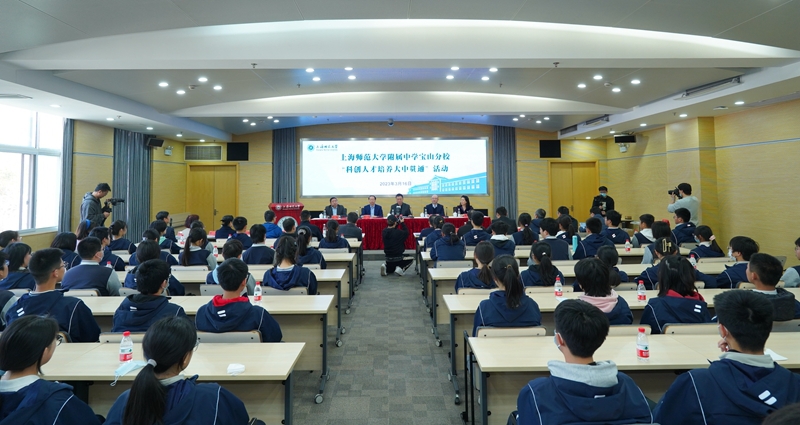 为探索科创育人新模式,促进拔尖创新人才早期培养,3月16日下午, 附属中学宝山分校在 徐汇校区组织开展了“科创人才培养大中贯通”活动。 党委书记林在勇、副校长张峥嵘,宝山区教育局局长张治,校 负责人、 专家教授组成的学术导师团队、 附属中学宝山分校的师生们参加了此次活动。
