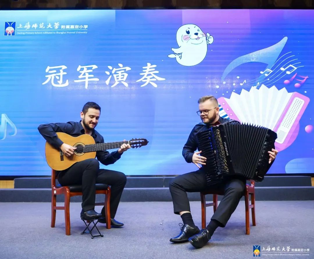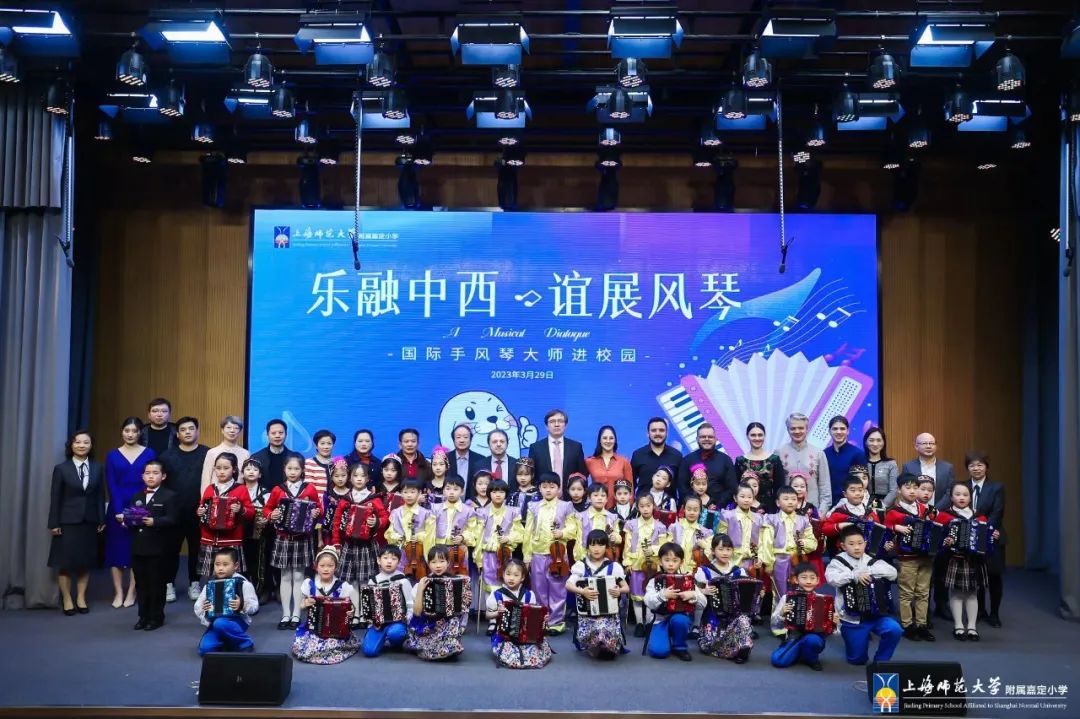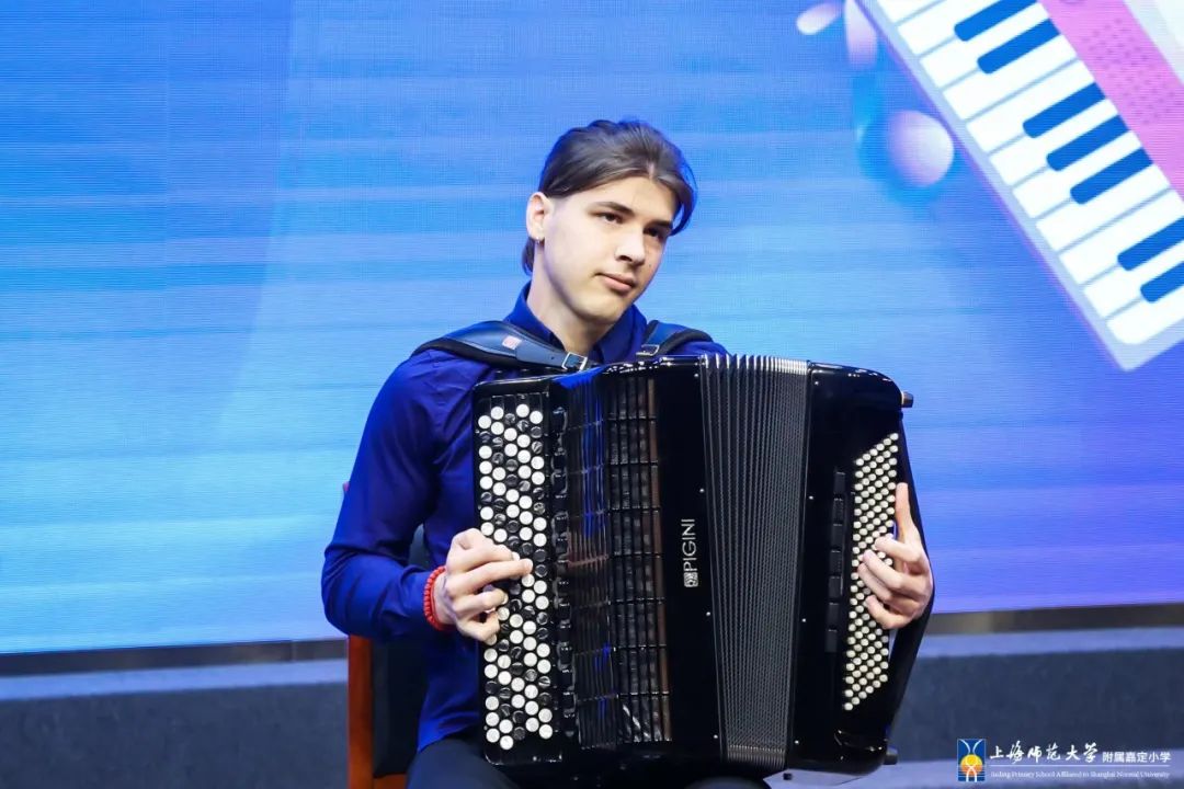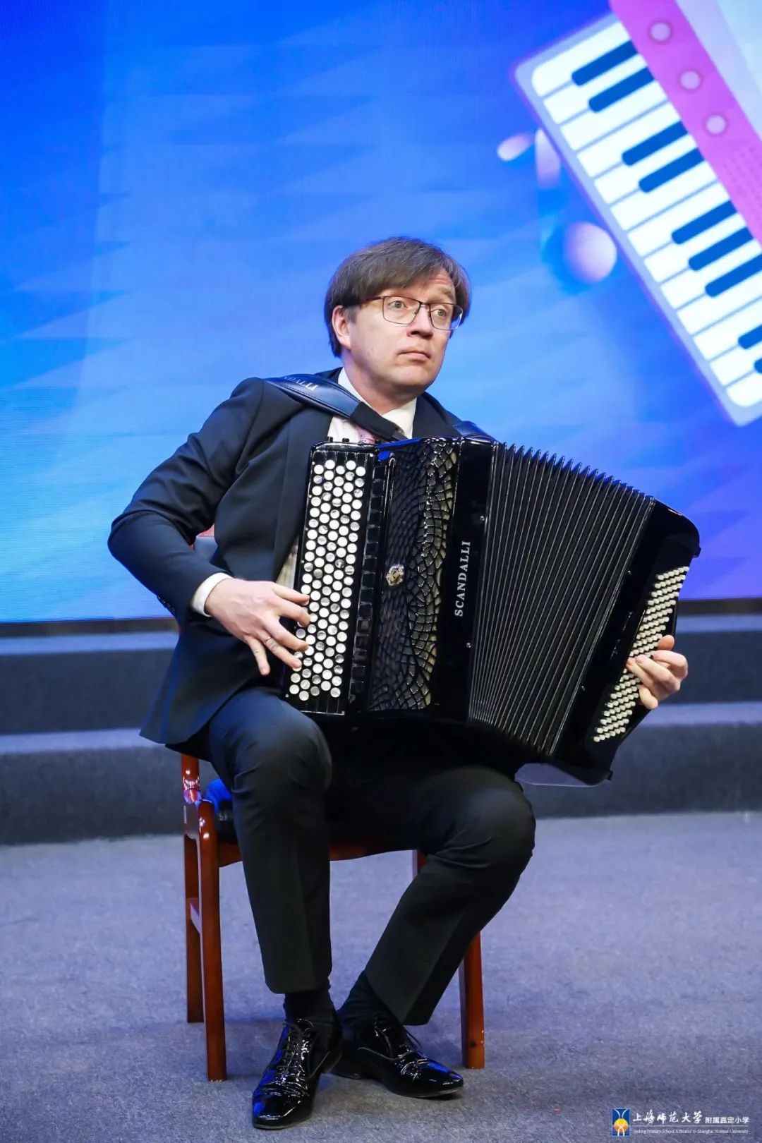 3月29日下午,在国际手风琴联盟副主席、中国音协手风琴学会会长李聪陪同下,国际手风琴联盟主席米高·帕特里尼,国际手风琴联盟艺术委员会主席、俄罗斯格涅辛音乐学院民乐系主任亚历山大·谢利瓦诺夫,以及波兰、塞尔维亚、巴西等“一带一路”沿线国家的世界顶尖手风琴演奏家齐聚 附属嘉定小学,让全校师生领略了一场全市瞩目的殿堂级演出。