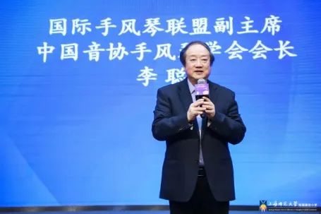 国际手风琴联盟副主席、中国音协手风琴学会会长李聪上台讲话。在对上师嘉小“小海狮手风琴乐团”所有学员的成果汇报给予充分肯定和赞誉后,他总结归纳“小海狮手风琴乐团”开办三年来的成功秘诀:一是社会音乐专业资源的充分开发与运用;二是学校为乐团大力搭建区、市、全国乃至国际艺术展演平台;三是乐团建设发展始终与学校“乐融中西”艺术教育宗旨挂钩,从而让孩子们愉快学琴,伴随一生。