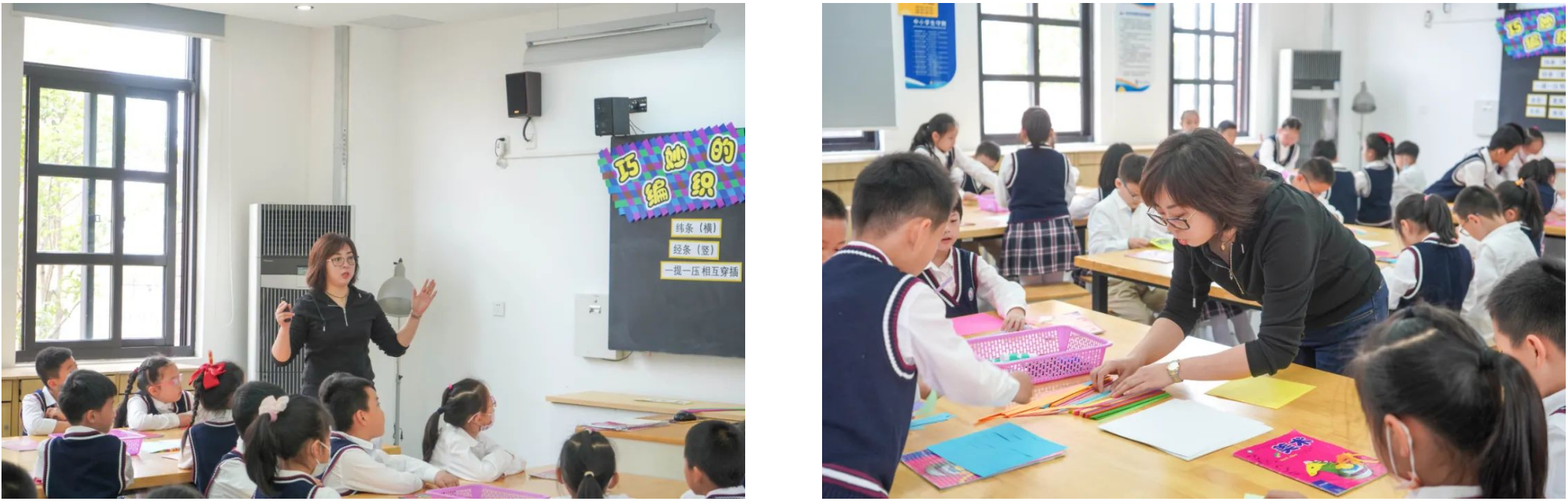 美术组以二年级第二学期教材《巧妙的编织》为主题,由上师嘉小张艳丽老师和梅溪小学姜家欢老师承担同课异构的教学。二年级6班和4班的小朋友们从中体验了动手实践和展示成果的快乐。