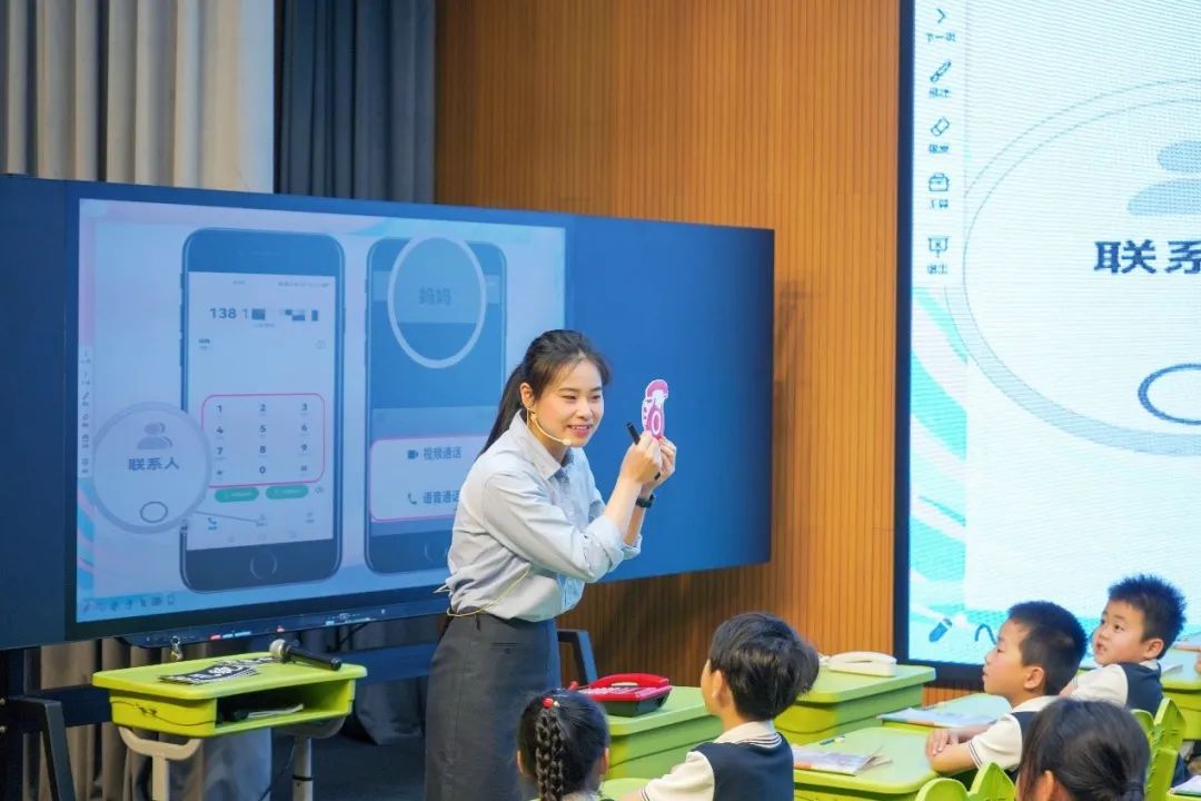 第一节课由范怡执教,她由直观的图片导入课题,激发学生的学习兴趣。教学中,范老师出示教材中的对话,一步步引导学生明白打电话的一般步骤,懂得打电话应做到有礼貌,电话接通后要将事情说清楚。同时,范老师还创设了许多交际情境,让学生在情境中进行表达,逐步提高学生的口语表达能力。在拓展环节中,范老师创设了打紧急电话的情境,教会学生通过打电话进行求助。从课内到课外的拓展,范老师力求让孩子把单纯的口语表达和生活中的交际行为结合起来,让学生学表达、爱表达。