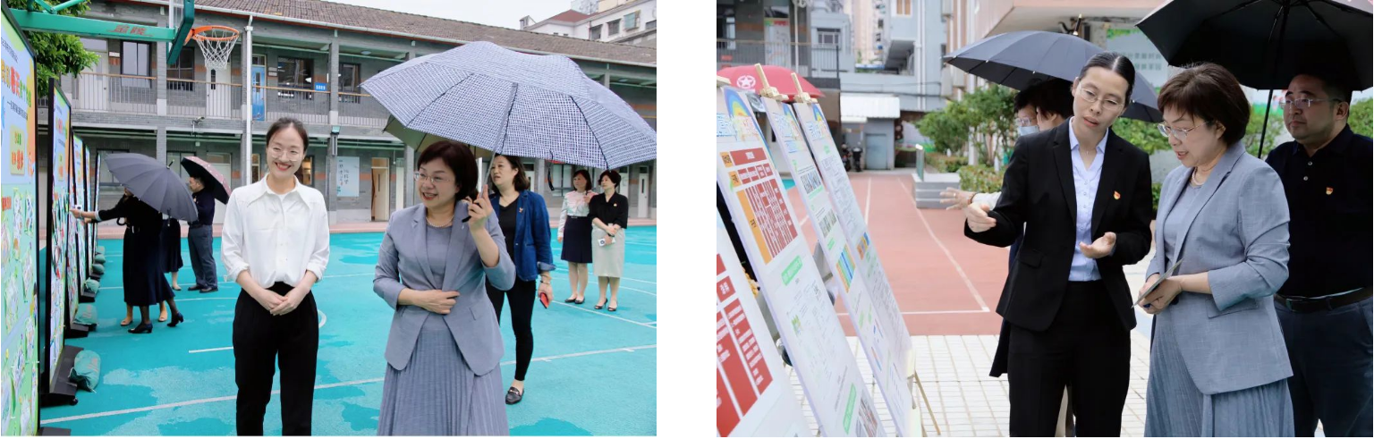 随后,袁园分别听取了“我和春天有个约会”“我的校园我做主——校园创意设计”“Wow!Drama!”“老城厢里‘探’城墙”等跨学科主题学习活动的相关汇报,各个学科从活动的开发与设计、活动的开展与实践等不同角度对学生的阶段性活动成果进行了展示,她对学生们生成的个性化、创意化的学习成果给予了高度赞赏。